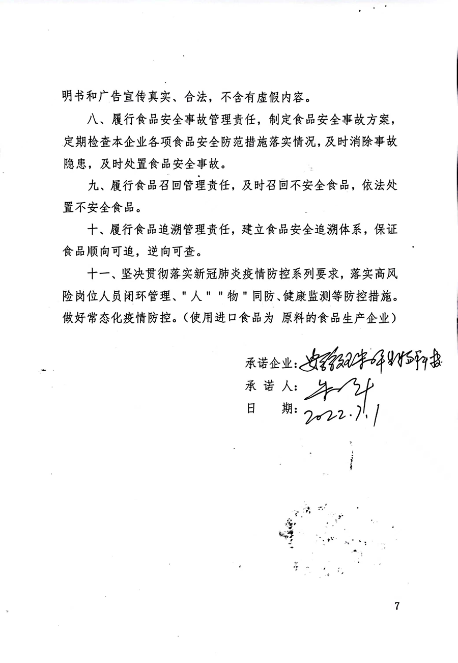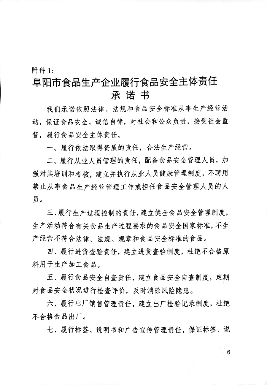 阜陽市食品生產(chǎn)企業(yè)履行食品安全主體責(zé)任承諾書
