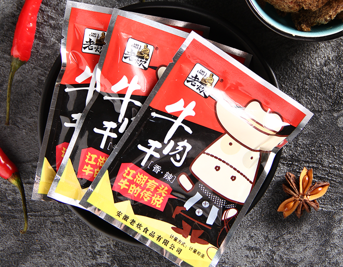 秘制配方:皖北黃牛肉為原料,秘制配方,顆顆入味;工藝獨家專利:研發(fā)工藝已申請并獲得國家專利;干、香、鮮美,小包裝攜帶方便